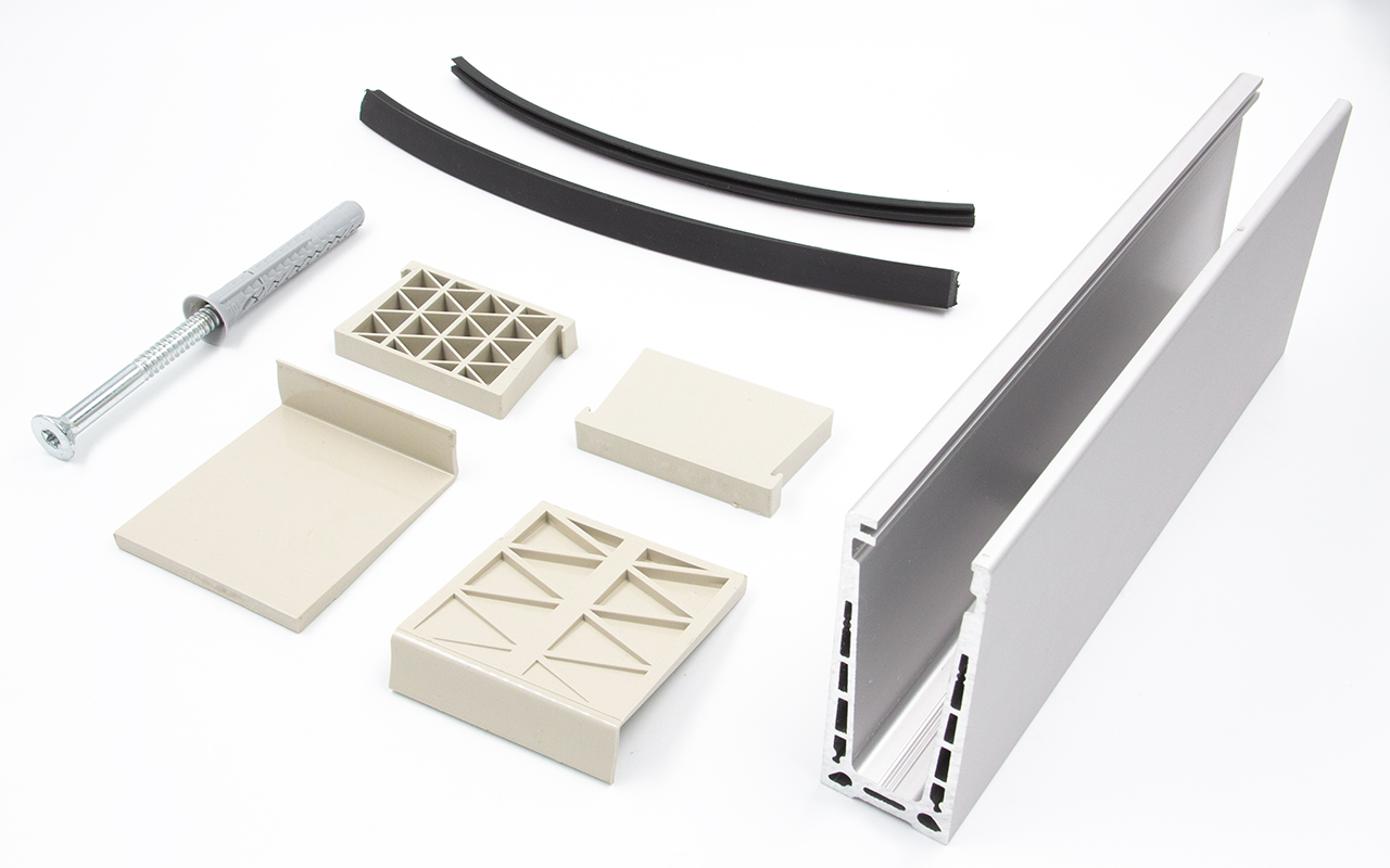 В комплект анодированного профиля под стекло 16мм и 8+8мм входит: