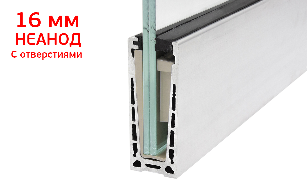 Комплект профиля зажимного для стекла 16 мм, с отверстиями, НЕАНОД, алюминий, k601-4-16