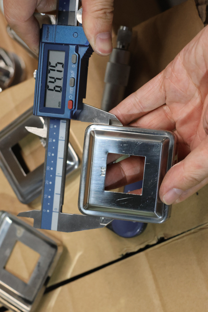 Низ стойки фигурный под трубу 40х40 мм, 82х82х0.8, высота 19 мм, полированный (AISI 304) k030-999