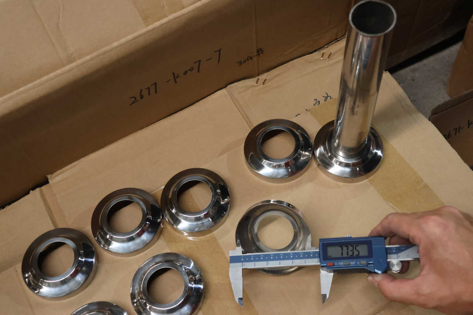 Низ стойки фигурный диаметром 38.1, Ø78х0.5 мм. Деталь полированная. Марка стали -  AISI 304 #400