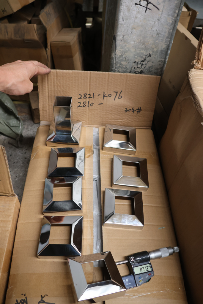 Низ стойки под трубу 40х40 мм, 82х82х0.8, высота 22 мм, полированный (AISI 304) k076
