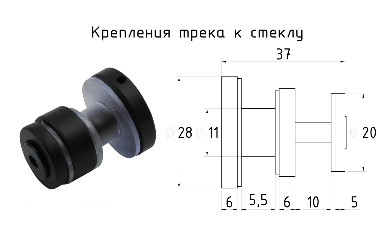 Крепление трека 30х10 к стеклу, AISI 304 черный t449 BL купить в Воронеже