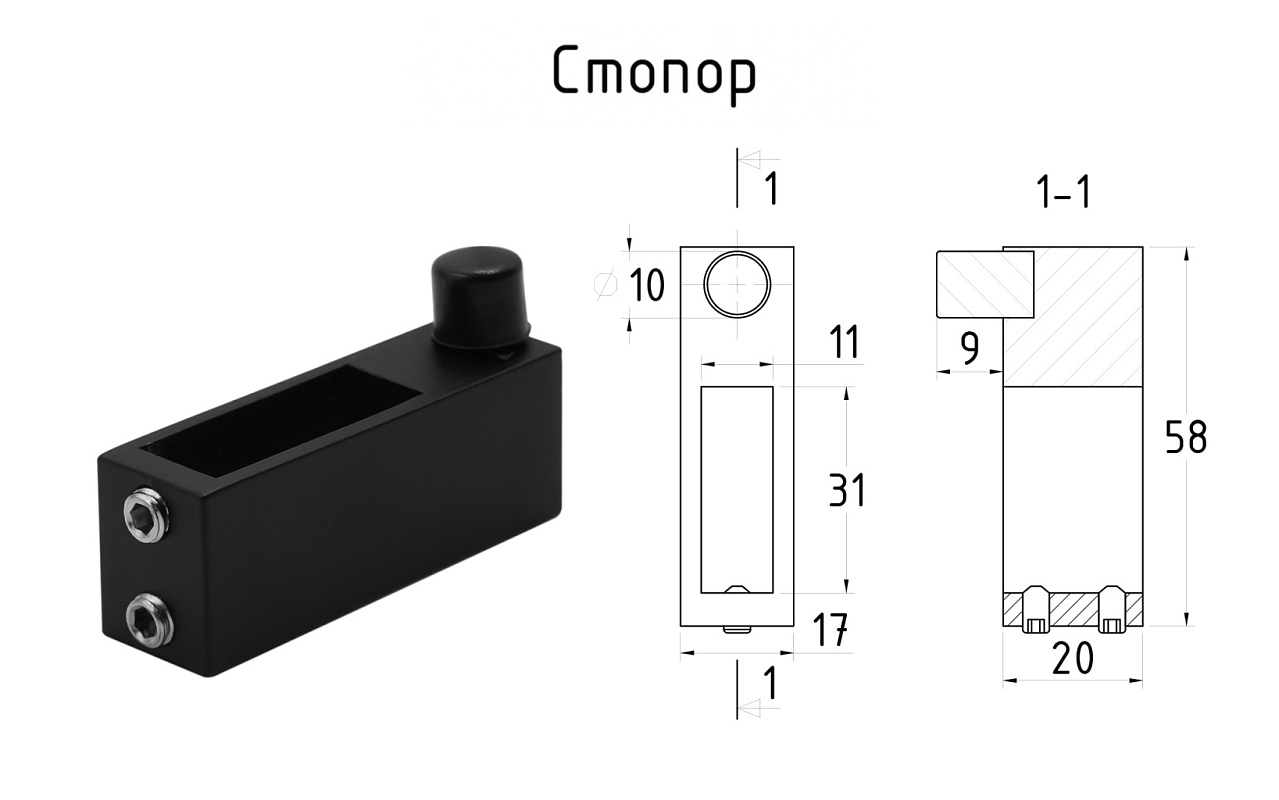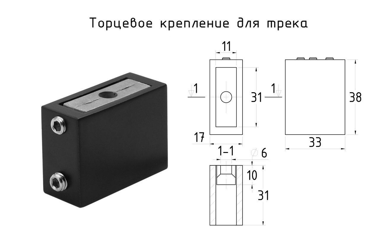 Коннектор регулируемый для трека 30х10 мм, нержавеющая сталь AISI 304, черная t465 BL купить в Воронеже