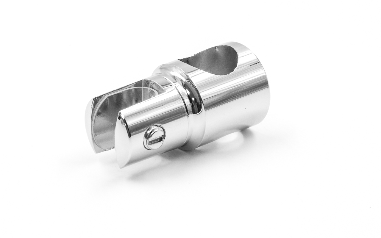 Крепежный элемент сквозной труба-стекло. Предназначен для соединения штанги в душевых кабинах со стеклом на любом участке штанги.