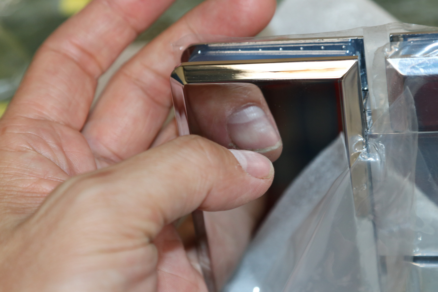 Петля для душевой кабины стекло-стекло 180° 90х55 мм, полированная. Марка стали - AISI 304