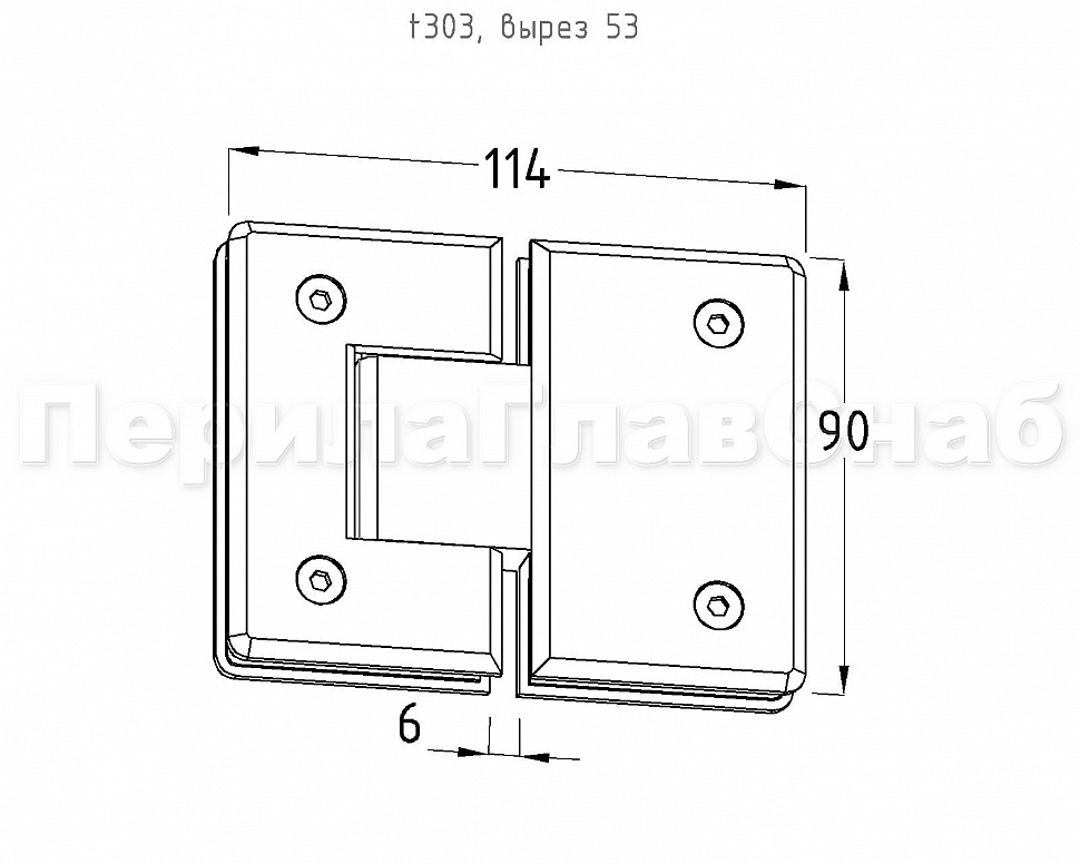 Петля для душевой кабины стекло-стекло 180° 90х55 мм, полированная t303 PSS