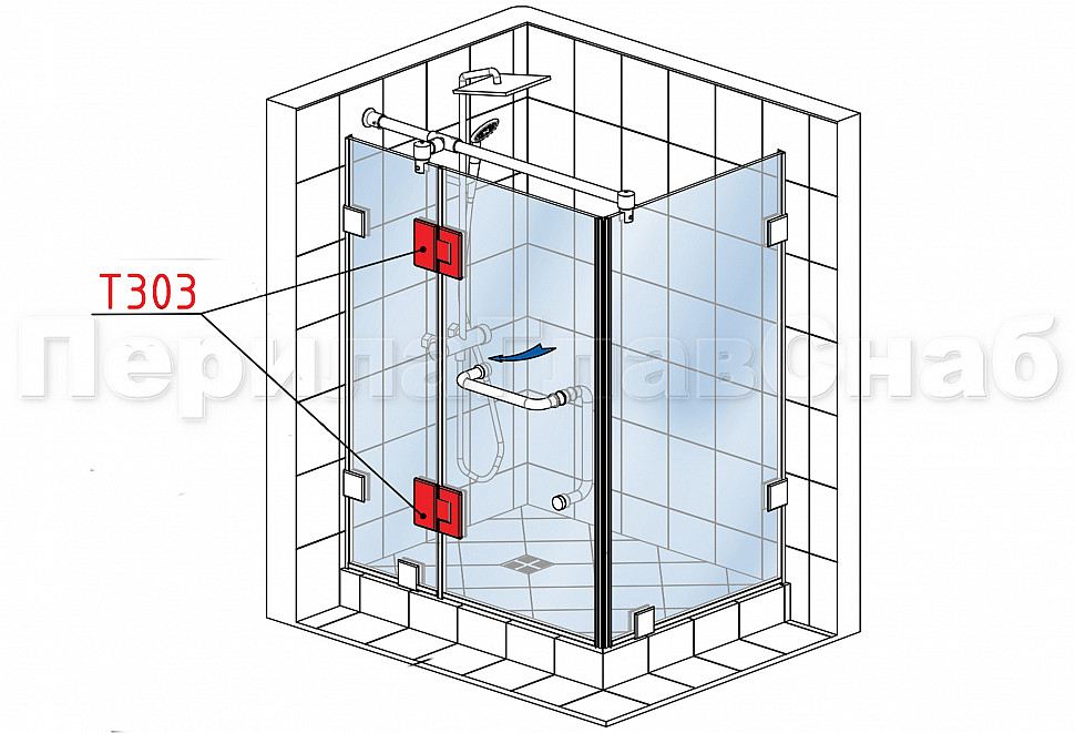 Петля из латуни с полированной поверхностью из хрома предназначена для стыковки между собой конструкционных элементов из стекла, толщина которых находится в диапазоне от 8 до 10 мм. Максимальный вес двери на 2 петли составляет 45 кг. В конструкции заложена система скрытого крепежа. Имеет функцию доводчика до закрытия от 25°. Максимальный угол разведения стыковочных элементов в плане составляет 180°.