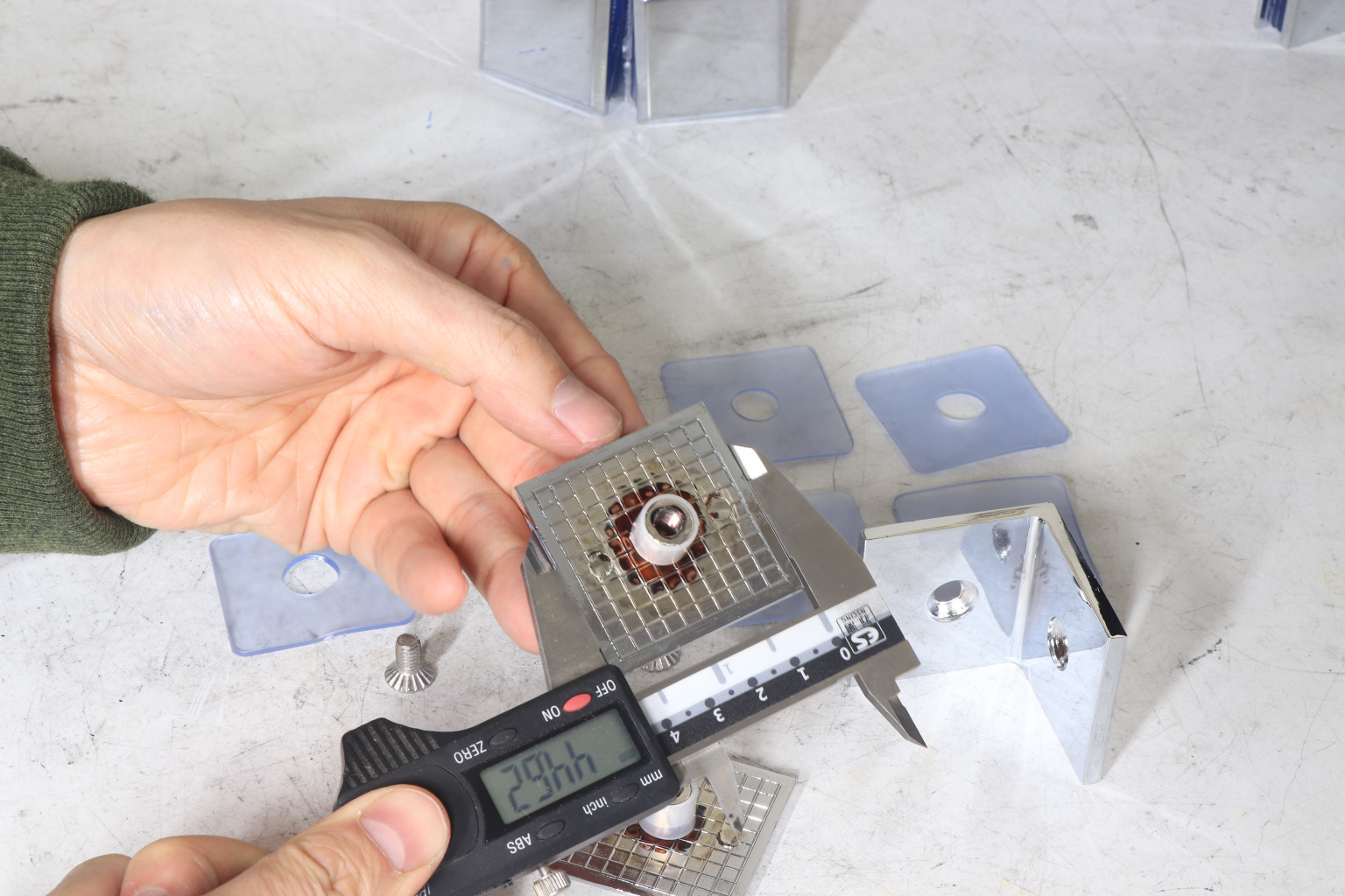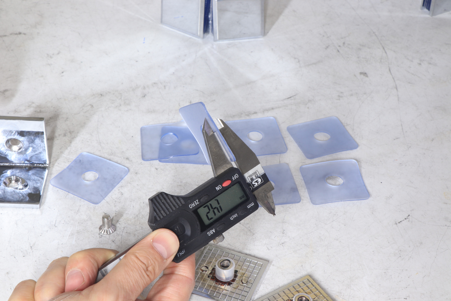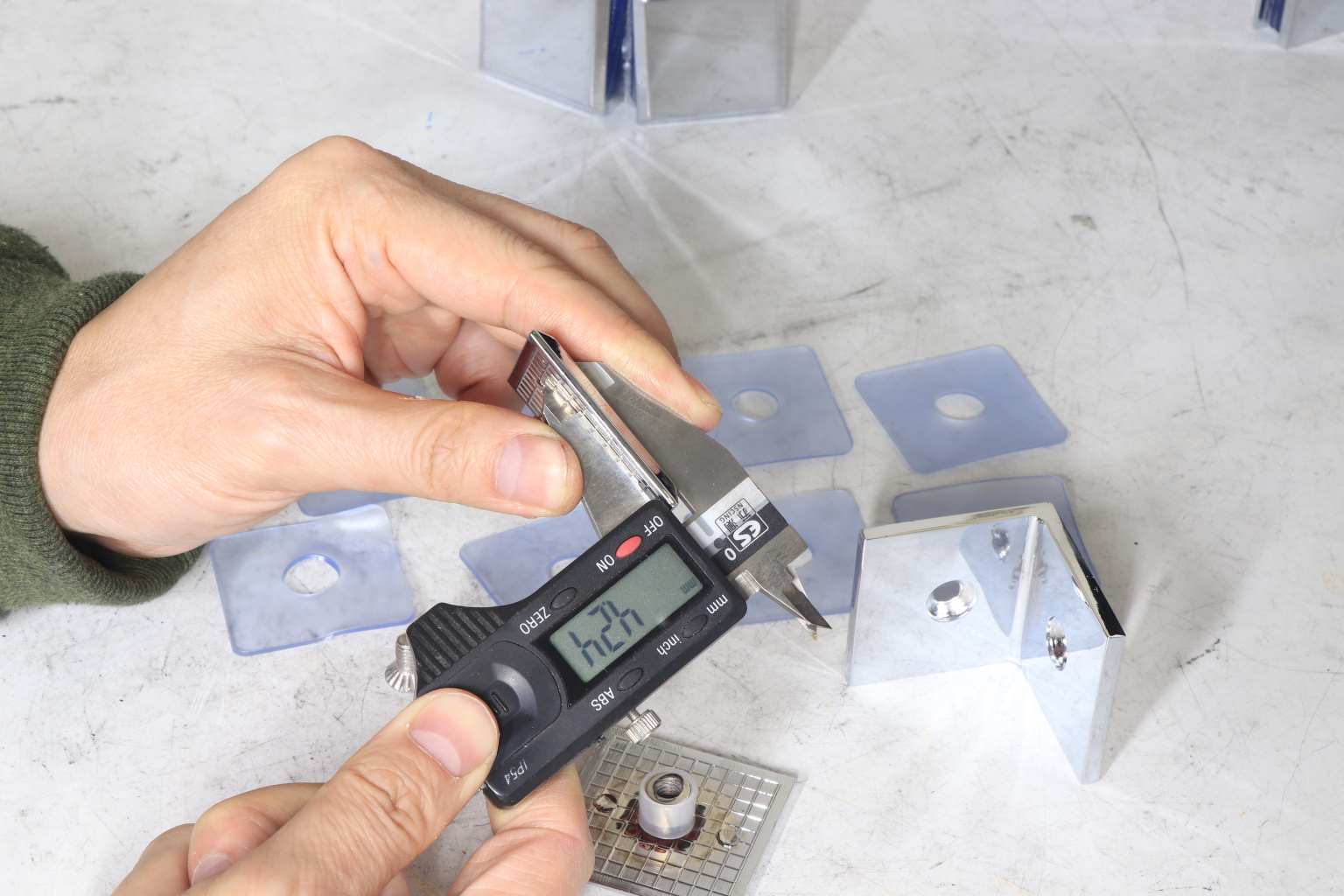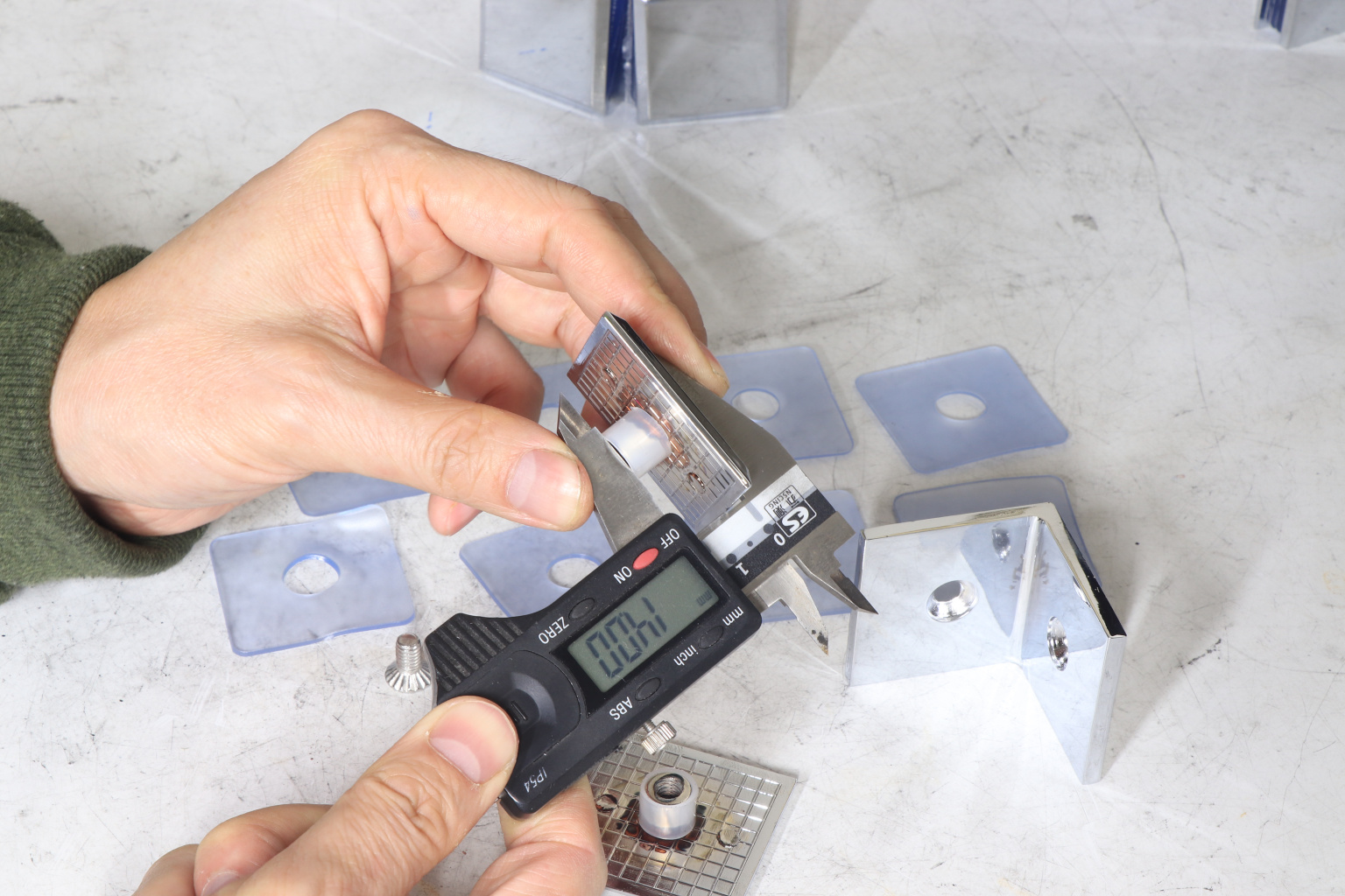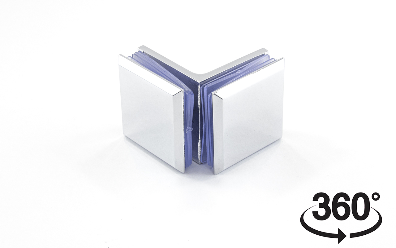 Коннектор для душевой кабины, стекло-стекло 90°, 45х45 мм. Материал - латунь-хром, поверхность - полированная