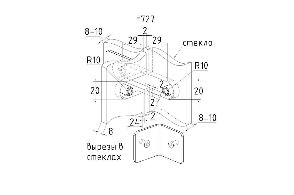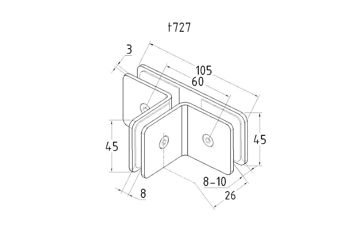 Коннектор для душевой кабины на 3 стекла латунь-хром t727 PC