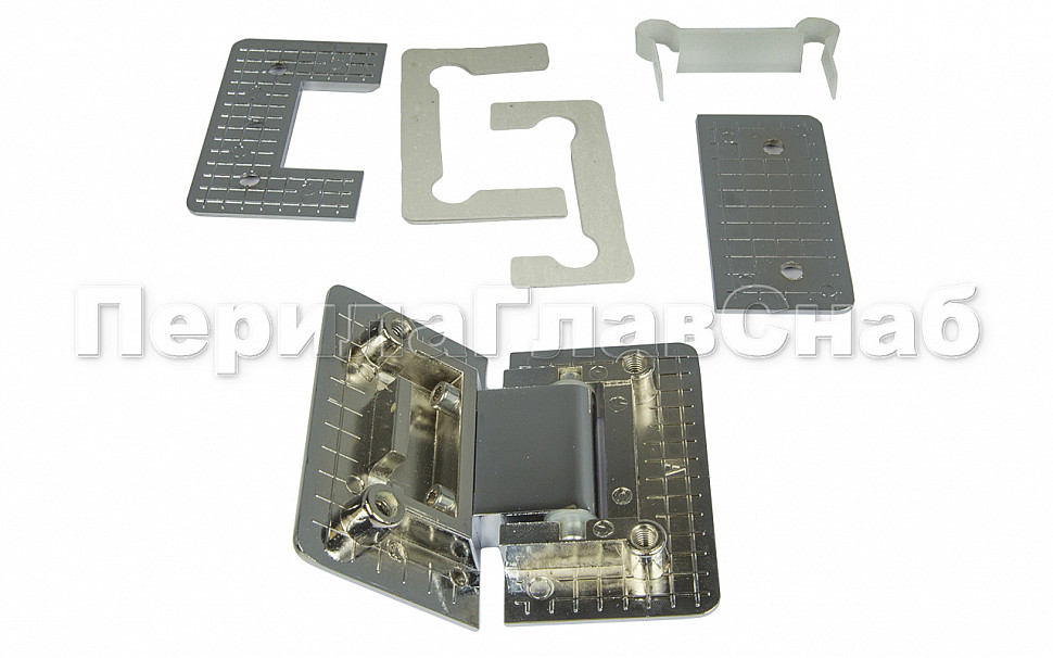 Петля из латуни с полированной поверхностью из хрома предназначена для стыковки между собой конструкционных элементов из стекла, толщина которых находится в диапазоне от 8 до 10 мм. В ней реализована функция самозакрытия и поворота в обе стороны. Петля стекло-стекло крепится с обеих сторон на стеклянные поверхности, плотно прижимаясь к ним своими металлическими зажимами.