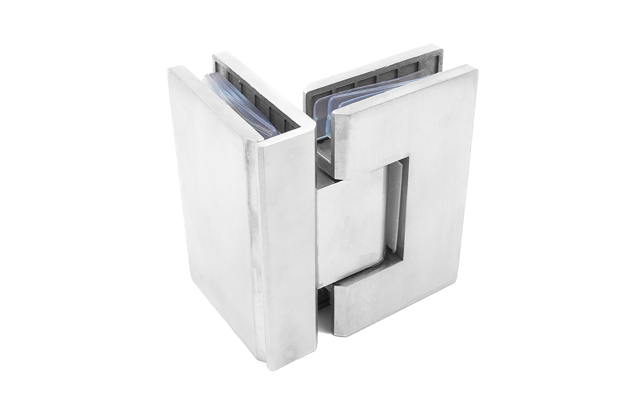 Материалы из нержавеющей стали отличаются надежностью стыковки стеклянных полотен, а также высокой стойкостью к коррозии. Именно последнее качество лежит в основе долговечной эксплуатации. Представленный здесь вид петель имеет конфигурацию стекло-стекло и позволяет закрывать двери душевых кабин в диапазоне с 250 до 900. В них реализована функция доводчика, что делает их эксплуатацию эргономичной. Прокладка обеспечивает место стыковки двух полотен из стекла не только герметичностью, но и поглощением вибраций.