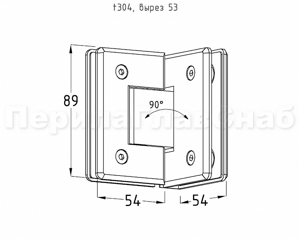 Петля для душевой кабины стекло-стекло 90° 90х55 мм шлифованная t304 SSS