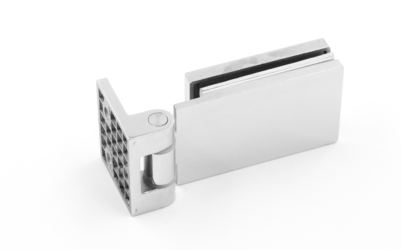 Петля для душевой кабины стена-стекло, поверхность- полированная, выдерживает нагрузку 35 кг на две петли, марка стали- AISI 304.