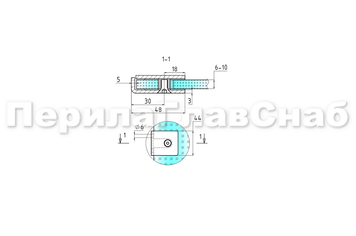 Коннектор для душевой кабины стена-стекло 45х45 мм, шлифованный. Марка стали - AISI 304