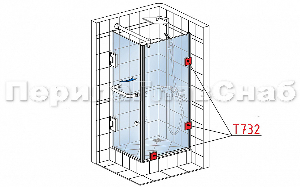 Коннектор для душевой кабины, стена-стекло 90°, 45х45 мм, цинк-хром полированный t732 PZn  купить в Воронеже