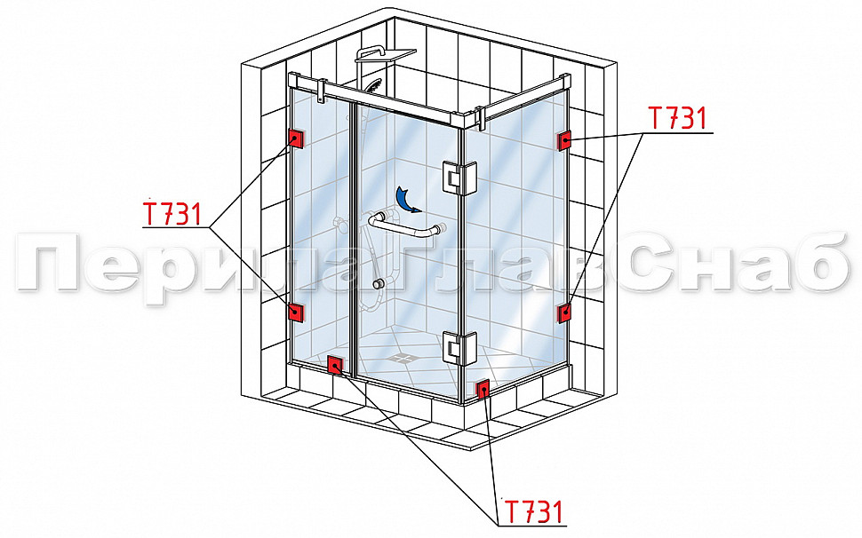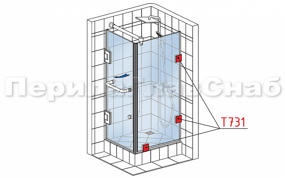 Коннектор для душевой кабины стекло-стекло 135°, 45х45, цинк , вырез 71 t736 PZn купить в Воронеже