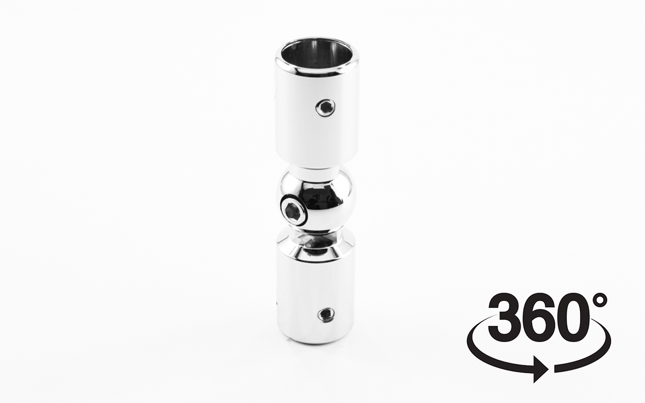 Cоединитель шарнирный, регулируется под произвольным углом. Предназначен для соединений штанги т900-03 т900-06. Материал - цинк-хром, поверхность - полированная