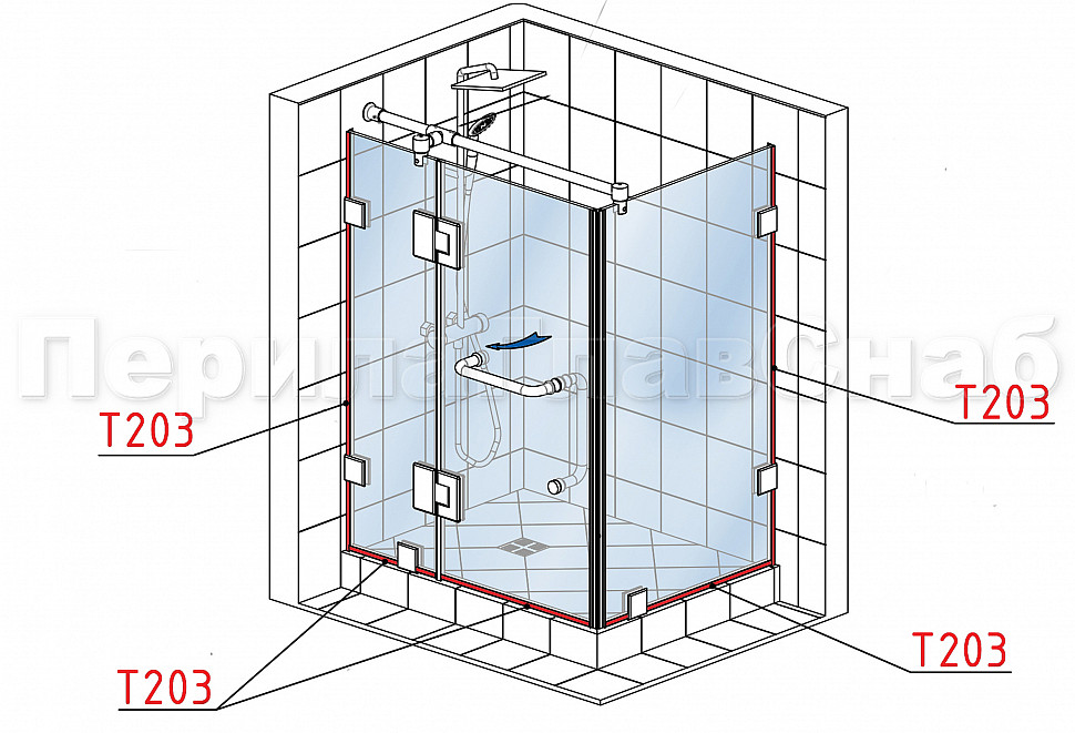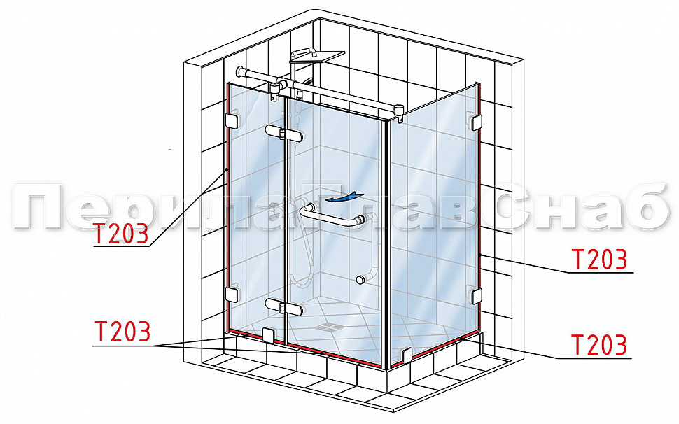 Комплект раздвижной системы для стеклянной душевой, нержавеющая сталь AISI 304, полированная t401 PSS купить в Воронеже