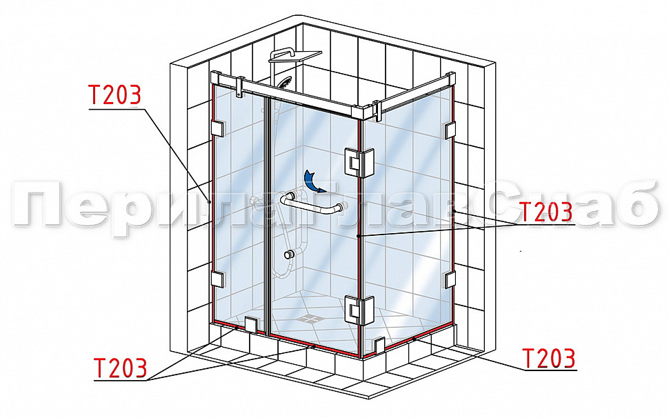 Уплотнитель для стекла в душевую кабину 8 мм, дверь-стекло 2200 мм t212