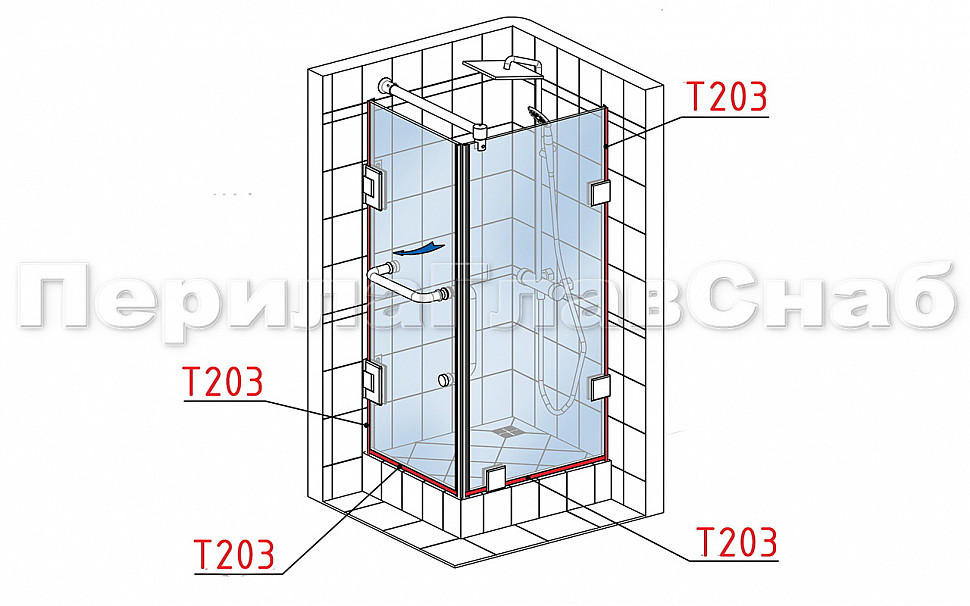 Комплект уплотнителей для стекла в душевую кабину (2 шт.), стекло-стекло 8 мм, с магнитом 90°/180°, 2200 мм t210 купить в Воронеже