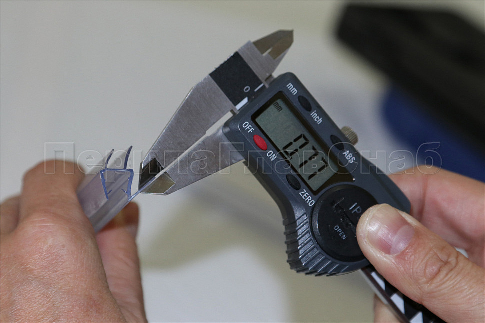 Уплотнитель имеет исполнение прозрачной поверхности, выполнен из материала ПВХ. Имеет П-образный профиль. Толщина одного типоразмера составляет 1.5 мм, длина – 2200 мм. За счет своих свойств (стойкость к щелочам, минеральным маслам и многим кислотам) прекрасно подходит для крепления стеклянного листа по всему периметру. Позволяет герметично соединять стеклянные панели со стеной, что гарантируют отсутствие течи в вертикальной части конструкции. Этот уплотнитель применим в сочетании со стеклом толщиной до 8 мм и углом в плане до 1350. Лучше всего подходит для установки в пол.