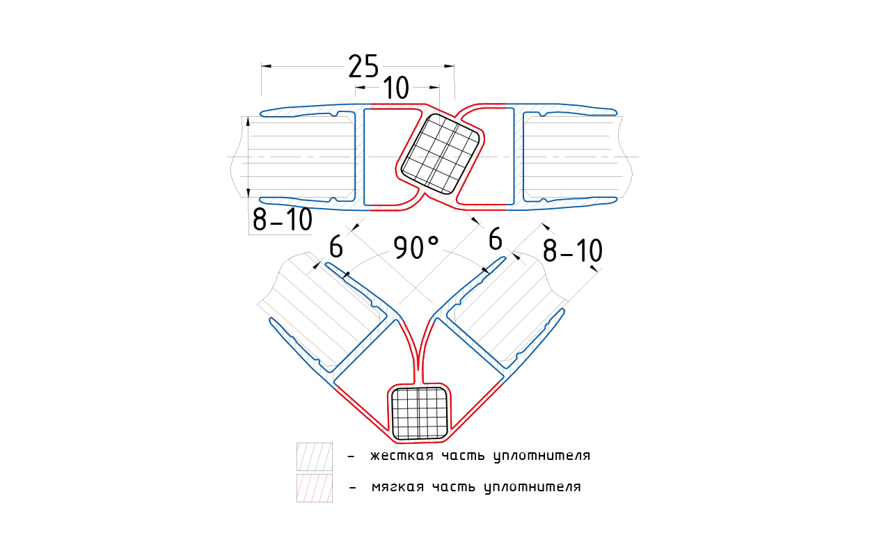 Комплект уплотнителей для стекла в душевую кабину для стекла 8 мм (2 шт.), прозрачный, стекло-стекло, с магнитом 90°/180°, 2200 мм t210-2