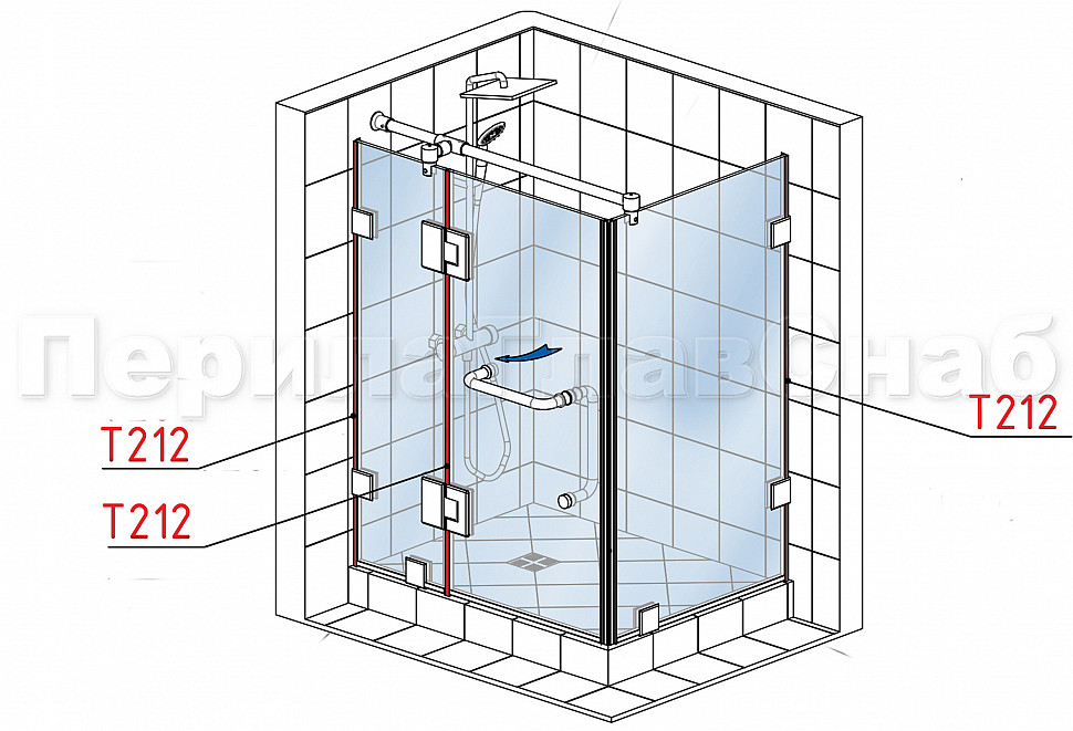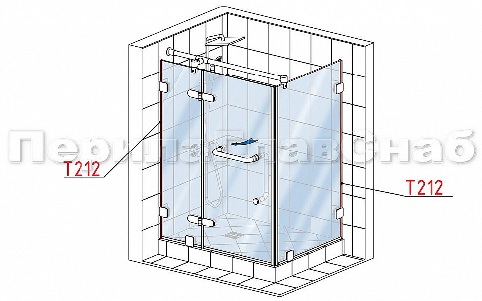 Комплект раздвижной системы для стеклянной душевой, нержавеющая сталь AISI 304, полированная t401 PSS купить в Воронеже