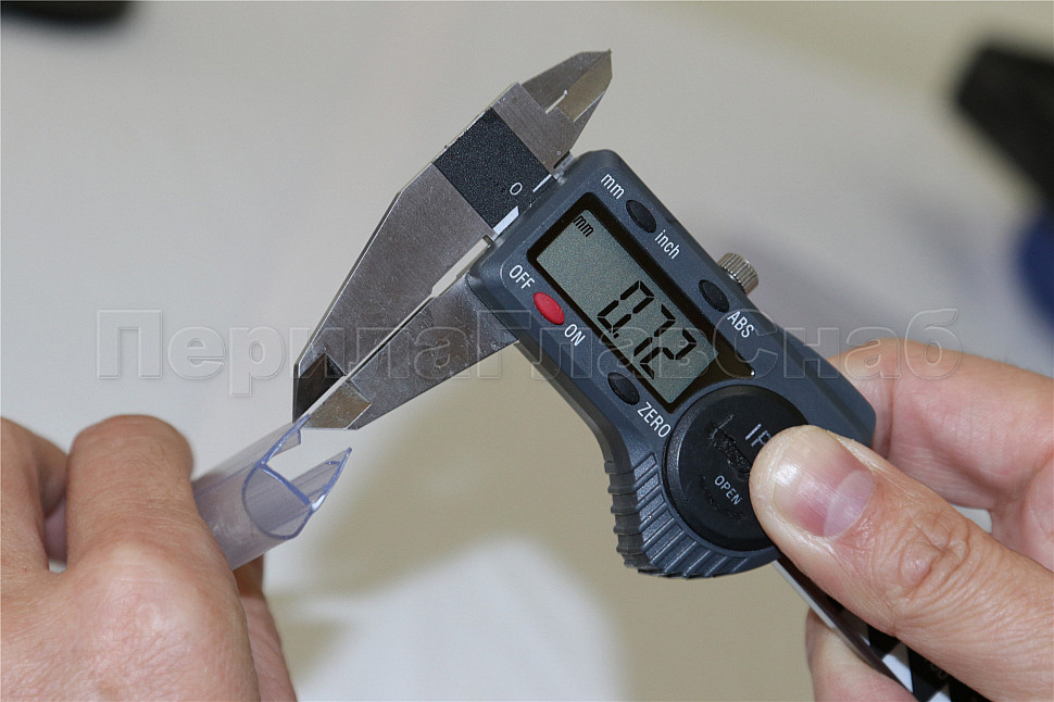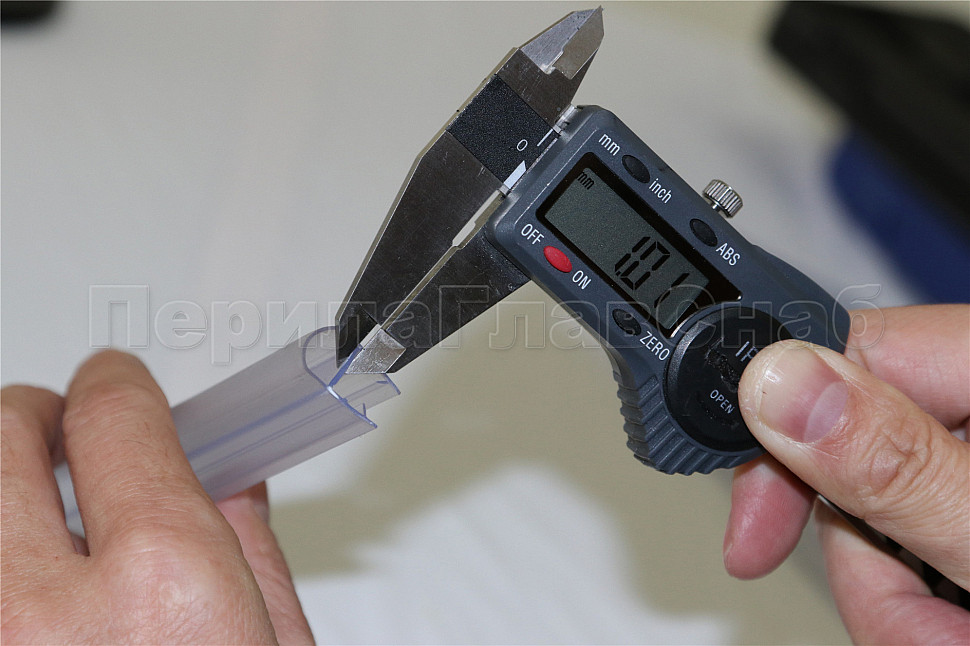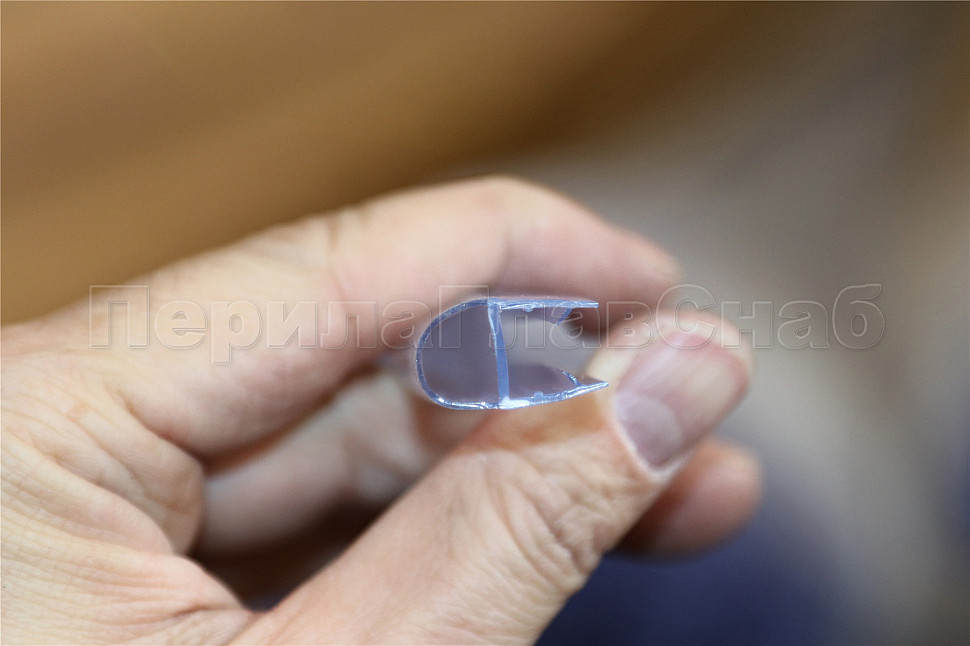 Уплотнитель имеет исполнение прозрачной поверхности, выполнен из материала ПВХ. Имеет A-образный профиль. Толщина одного типоразмера составляет 1.5 мм, длина – 2200 мм. За счет своих свойств (стойкость к щелочам, минеральным маслам и многим кислотам) прекрасно подходит для крепления стеклянного листа по всему периметру. Позволяет герметично соединять стеклянные панели с дверью, что гарантируют отсутствие течи в вертикальной части конструкции.