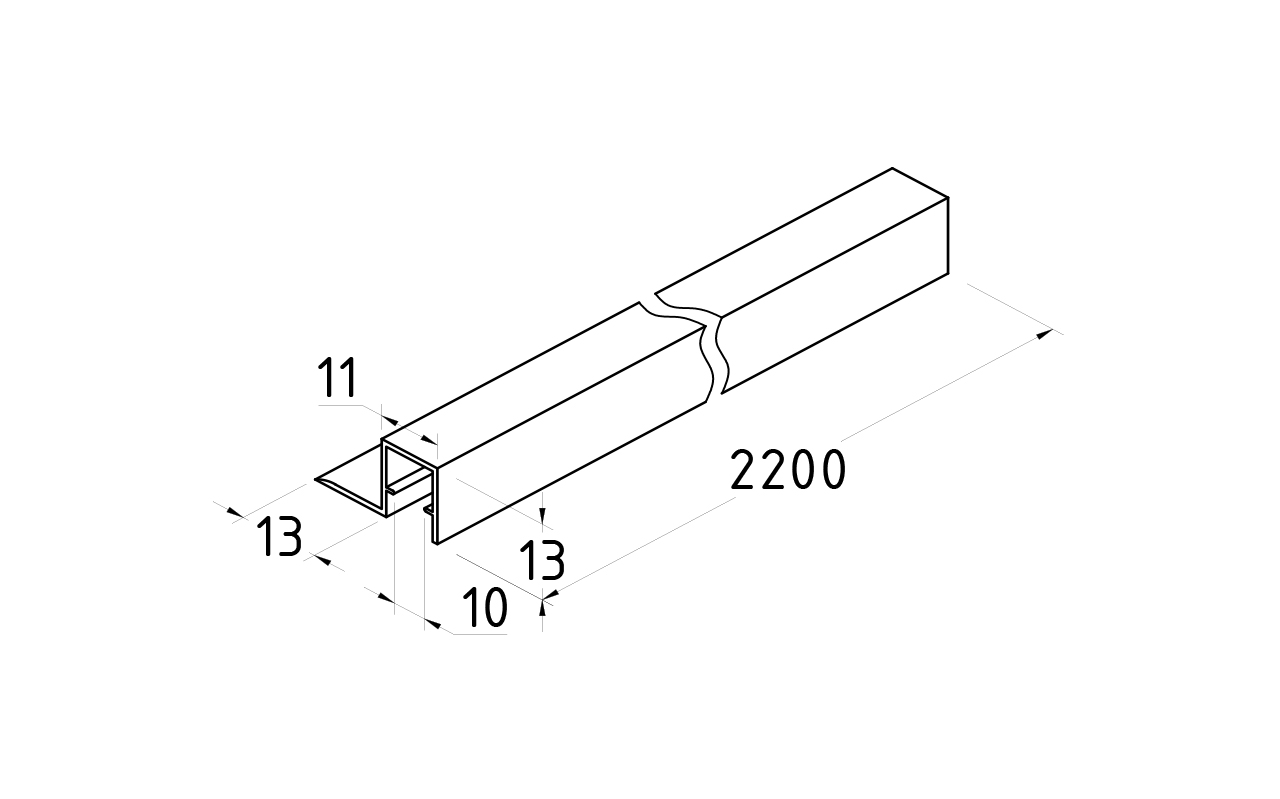 Профиль П-образный, L=2000 мм, t=1.5 мм, для стекла 10 мм, шлиф. (AISI 304) Ф-1147