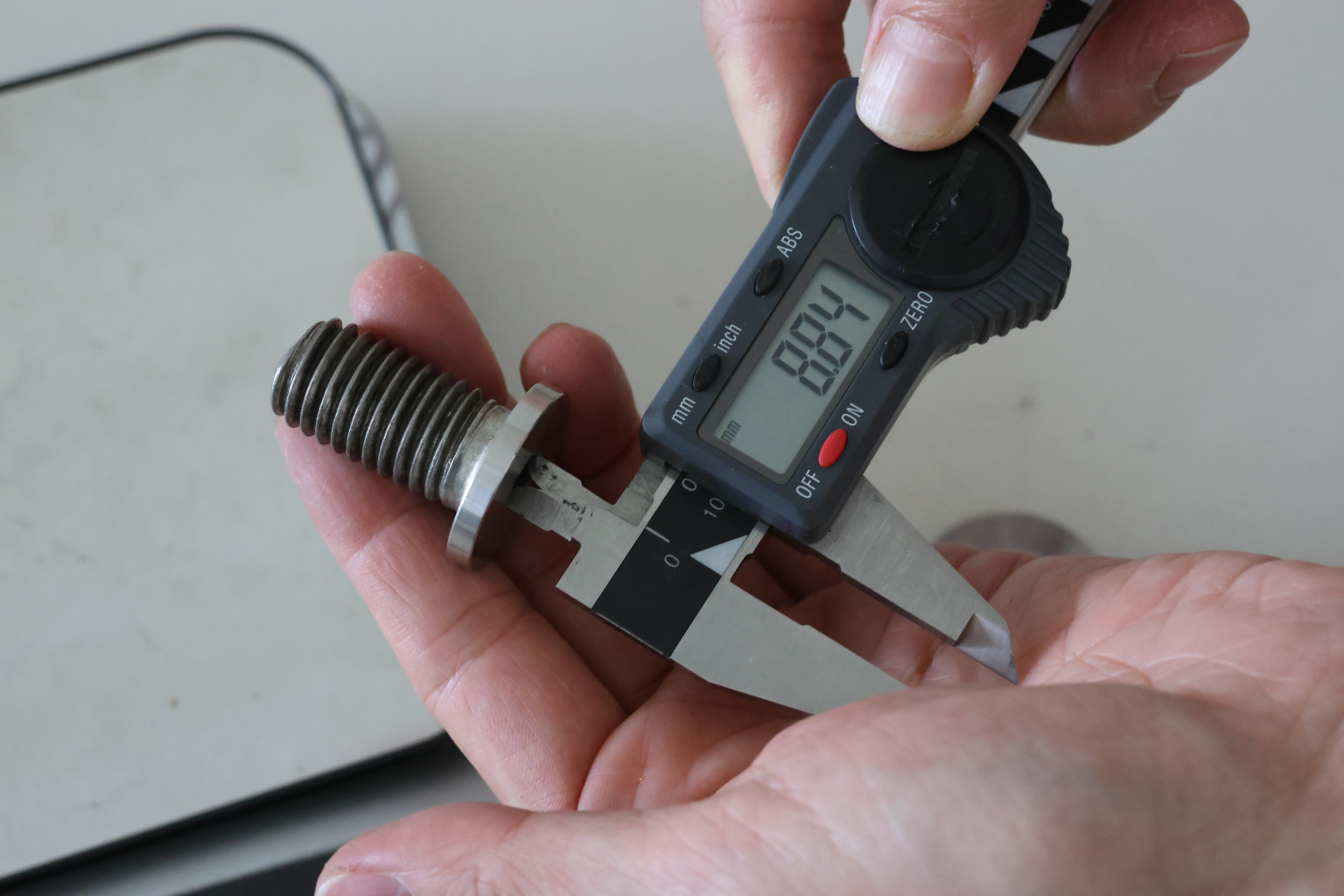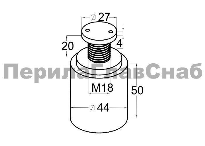 О-болт. Деталь состоит из трёх основных элементов: основания, регулировочной шайбы и винта. Основание выполнено из чёрного металла, а шайба и винт из стали AISI 304. Основание имеет диаметр 44 мм. Винт с прослабленной резьбой М16. Регулировочная шайба позволяет устанавливать расстояние крепящегося элемента в диапазоне одного сантиметра. Выдерживает нагрузку более 300 кг.