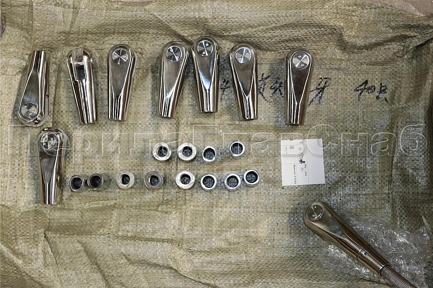 Наконечник монтируется на тягу, затем концом с пазом крепится на серьге либо на крепление со стеной.