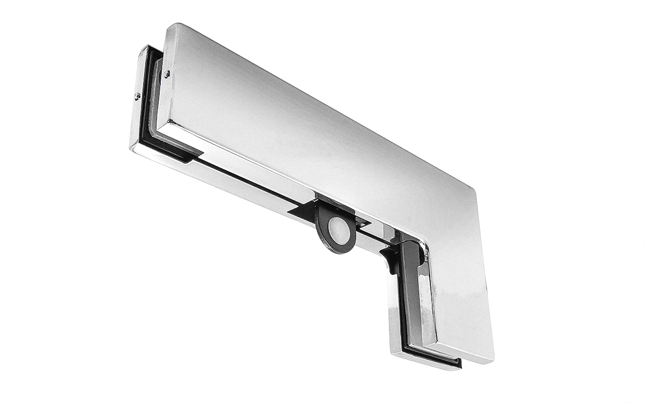 для соединения стационарной панели стеклянной перегородки с верхней фрамугой. Стопор ограничивает открывание двери в любую из сторон по выбору.