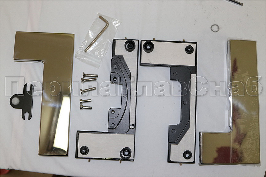 сбоку нажимаем на крепления крышек и снимаем. Отвинчиваем винты, и фиксируем фитинг в подготовленный вырез в стекле. Далее закручиваем и фиксируем обратно крышки.