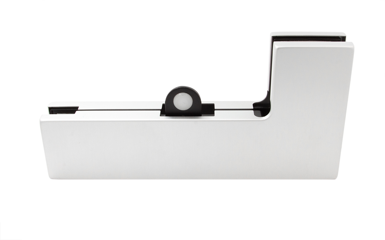 для соединения стационарной панели стеклянной перегородки с верхней фрамугой. Стопор ограничивает открывание двери в любую из сторон по выбору.