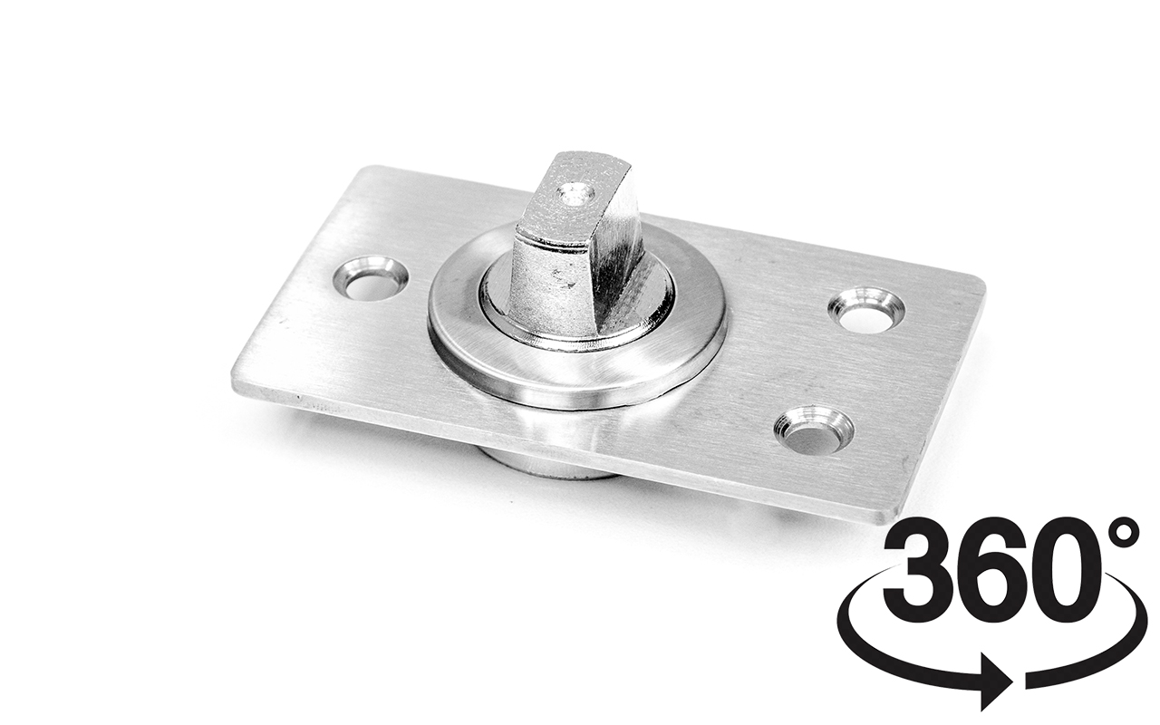 Имеет свободный ход, поэтому не фиксирует дверь ни в открытом, ни в закрытом положении. Как правило, требует установки напольных ограничителей открывания.