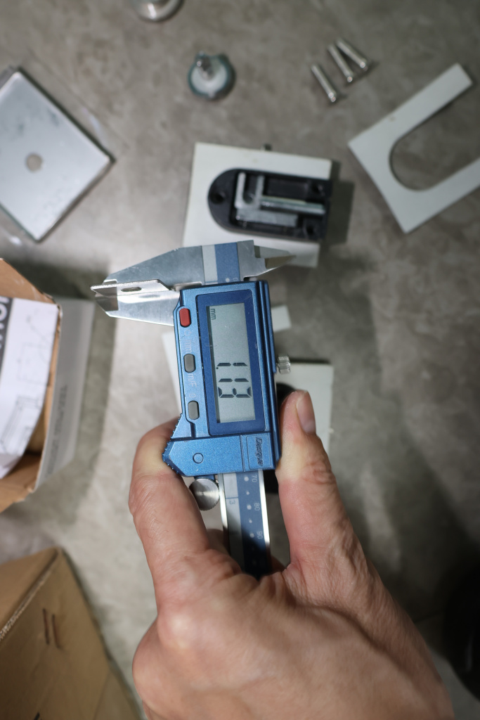 Сбоку нажимаем на крепления крышек и снимаем. Отвинчиваем винты, и фиксируем защелку замка в подготовленный вырез в стекле. Далее закручиваем и фиксируем обратно крышки.