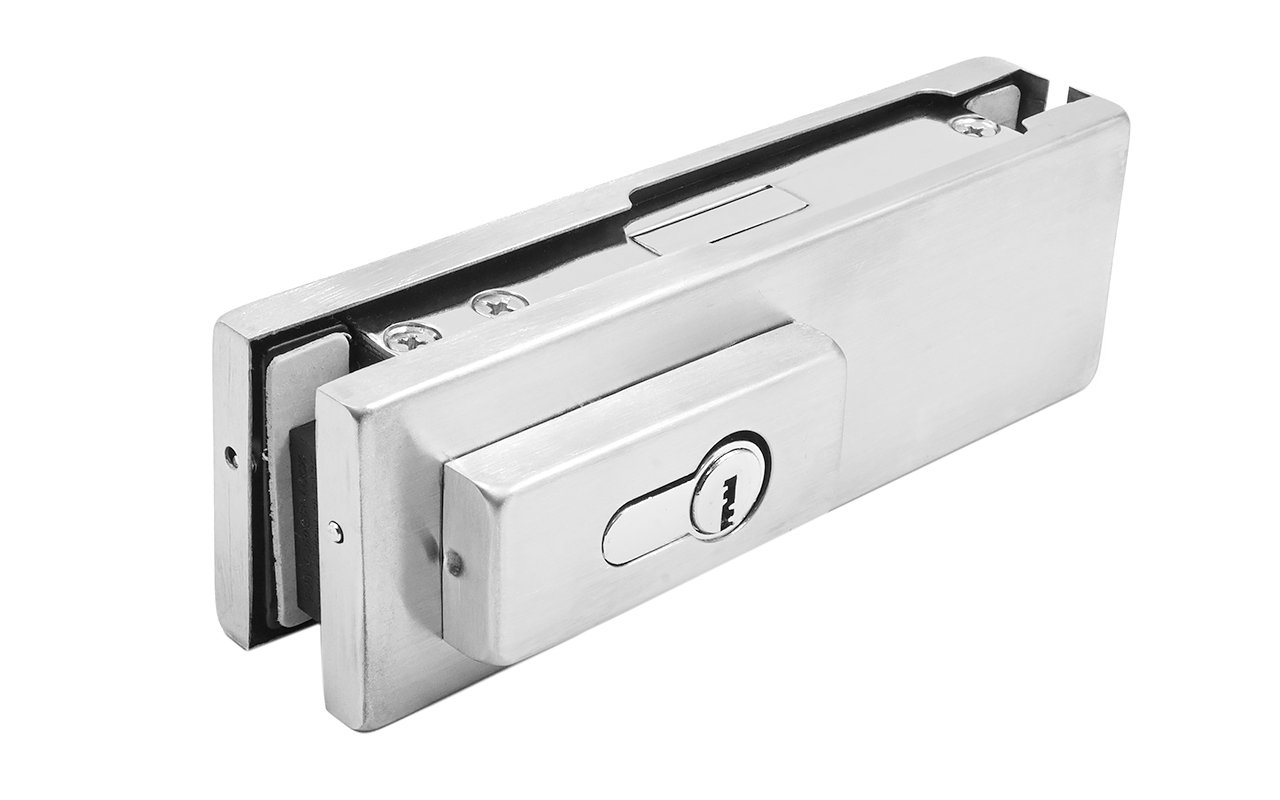Замок для стеклянной двери центральный с прямоугольным ригелем, шлифованный, вырез 13