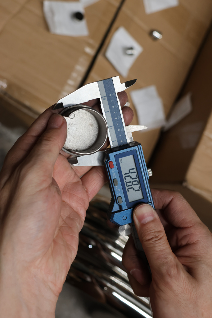 Заглушка для поручня с пазом диаметром 42.4 мм 5х34 мм. Деталь полированная, марка стали - AISI 304