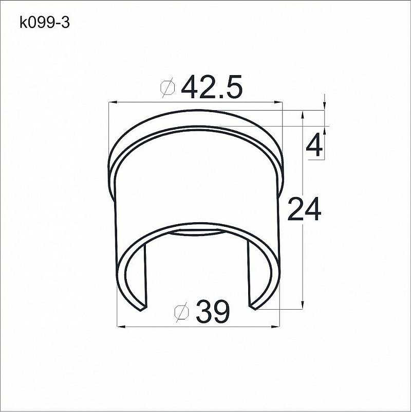 k231 — фланец настенный для поручня Ø42.4 мм с пазом 24х24 мм под стекло;