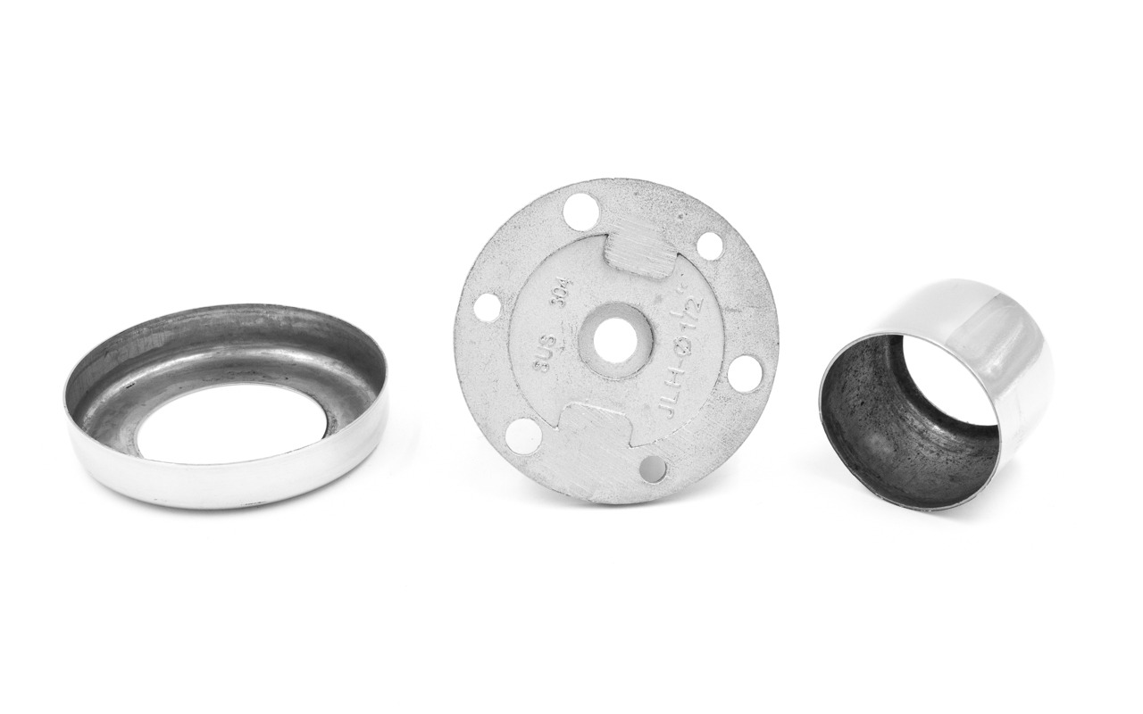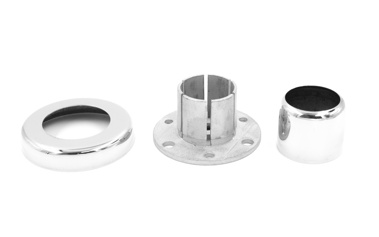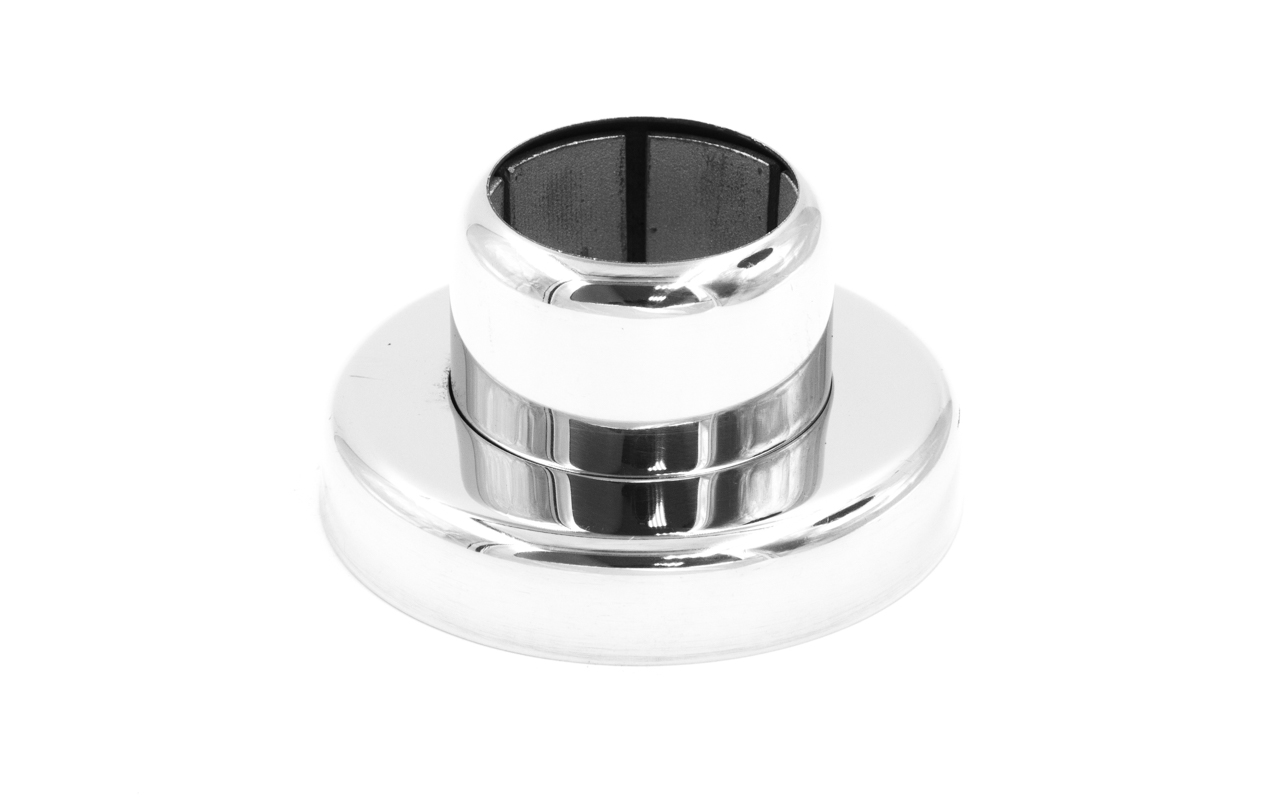 Цанга для крепления стоек из трубы Ø38.1 мм ( k819, k849). Крепится на 3 анкера М8 или на один по центру для надежной установки на деревянную ступень, плитку, бетон. В комплект входят две декоративные крышки.