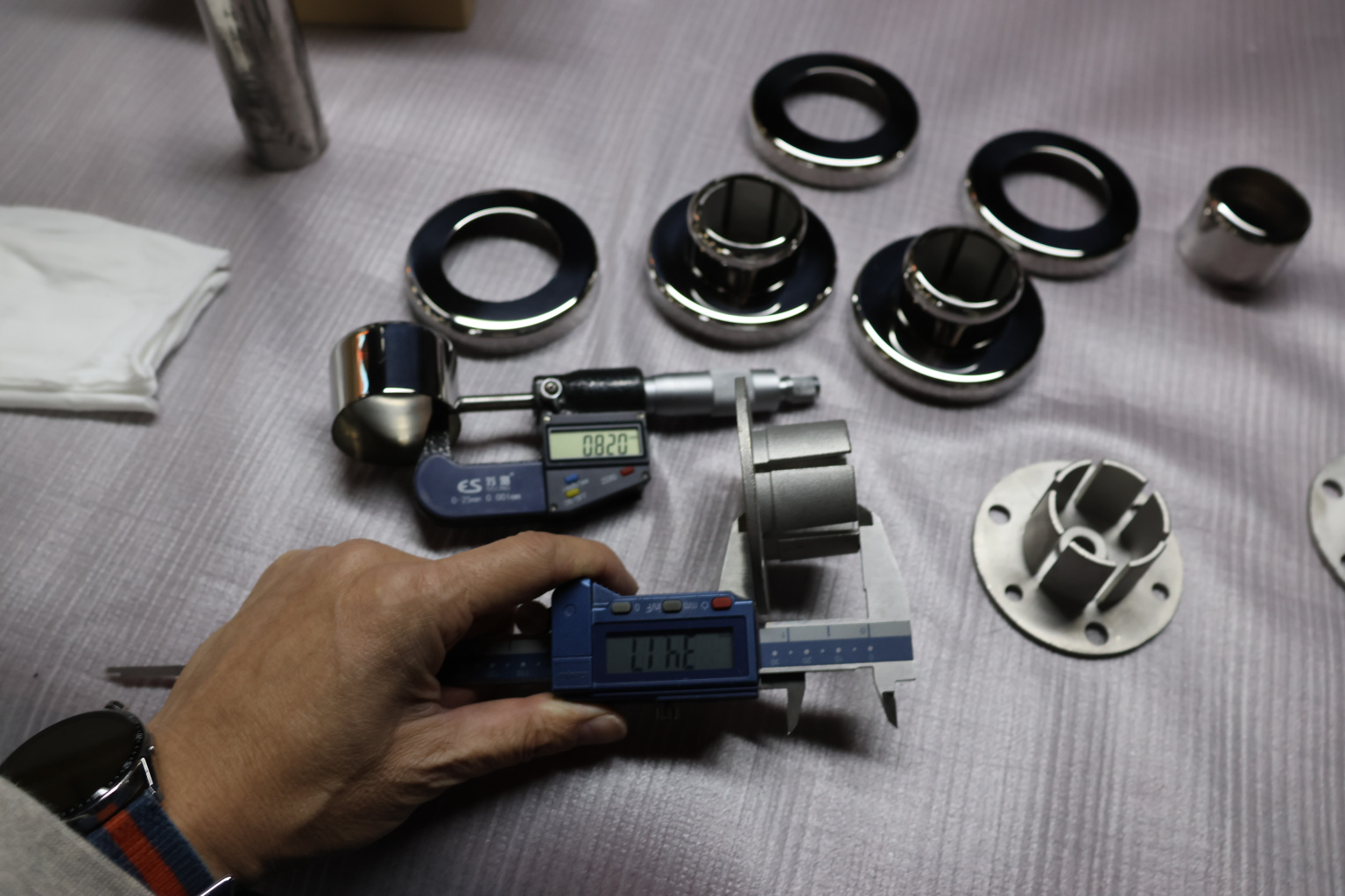 Цанга под трубу Ø38.1 мм, полированная #600, AISI 304, 3 отв.Ø7 мм, 3 отв. Ø9 мм, k026