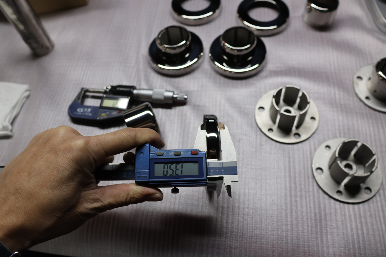 Цанга k026, фланец с лепестками для крепления трубы как сваркой, так и резьбовым соединением, с отверстиями О, для крепления цанги в поверхность. Крышки узлов соединения с трубой и с полом, полированные
