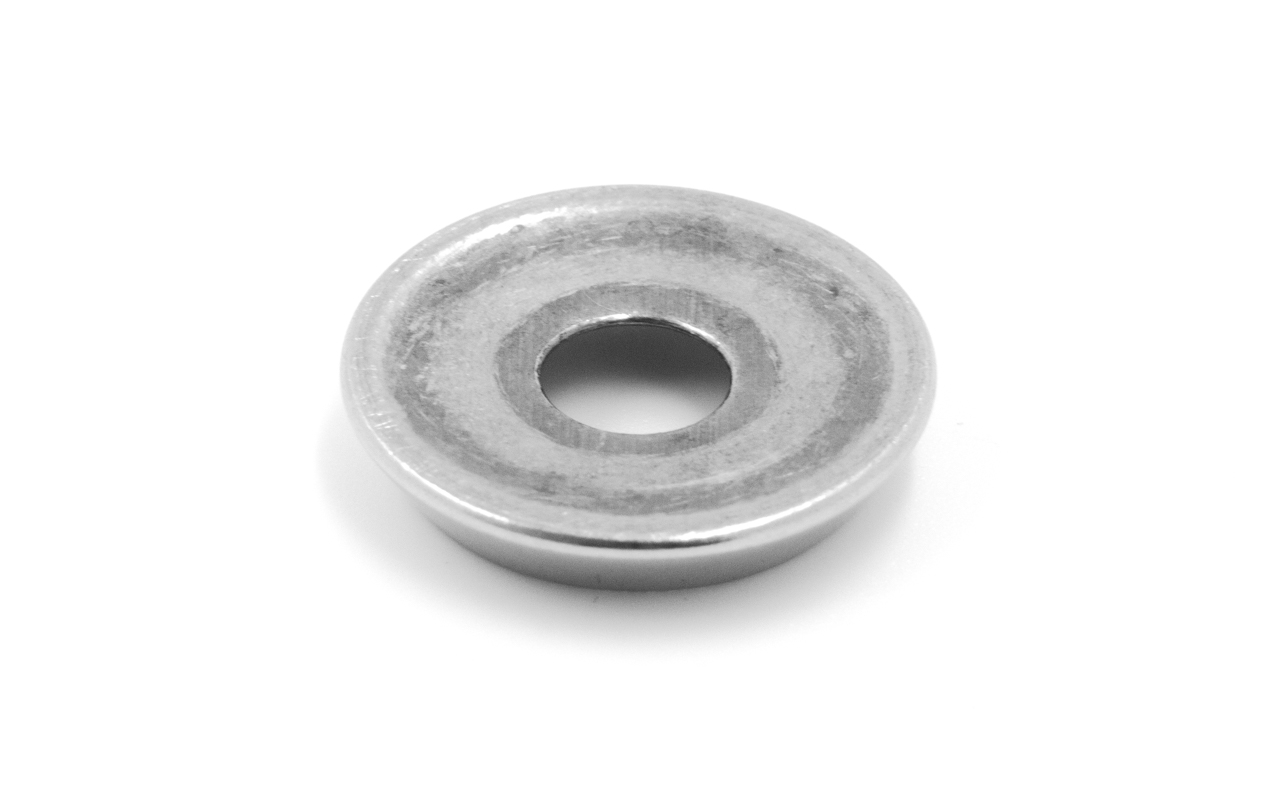 Фланец на стекло для трубы диаметром 16 мм. Деталь полированная, штампованная, с отверстием посередине диаметром 7 мм. Марка стали - AISI 304.