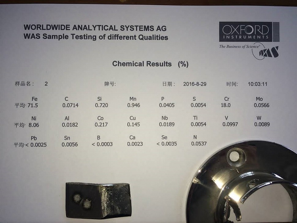 Фланец с тремя отверстиями для трубы с пазом диаметром 48.3 мм. Деталь литая, полированная. Марка стали - AISI 304