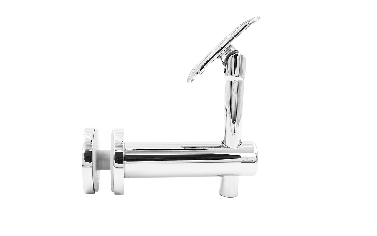 Выносной держатель поручня на стекло 8-20 мм, регулируемый, с ложементом, полированный, (AISI 304) k241-5