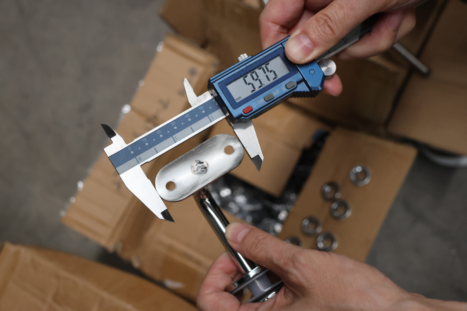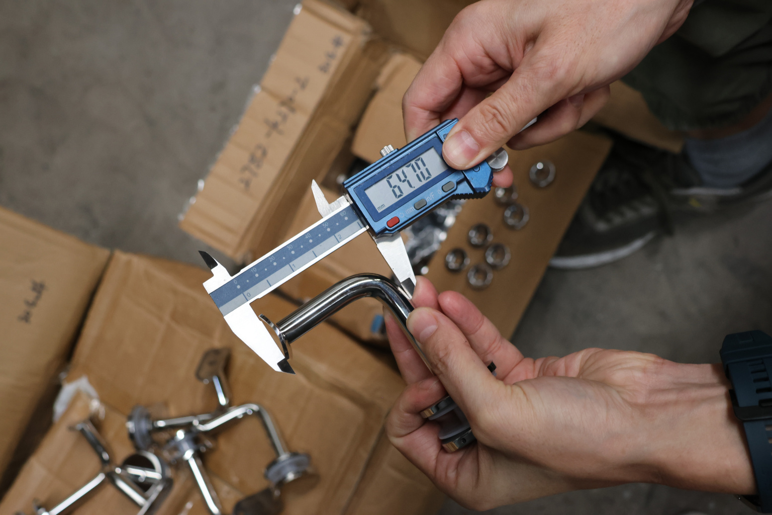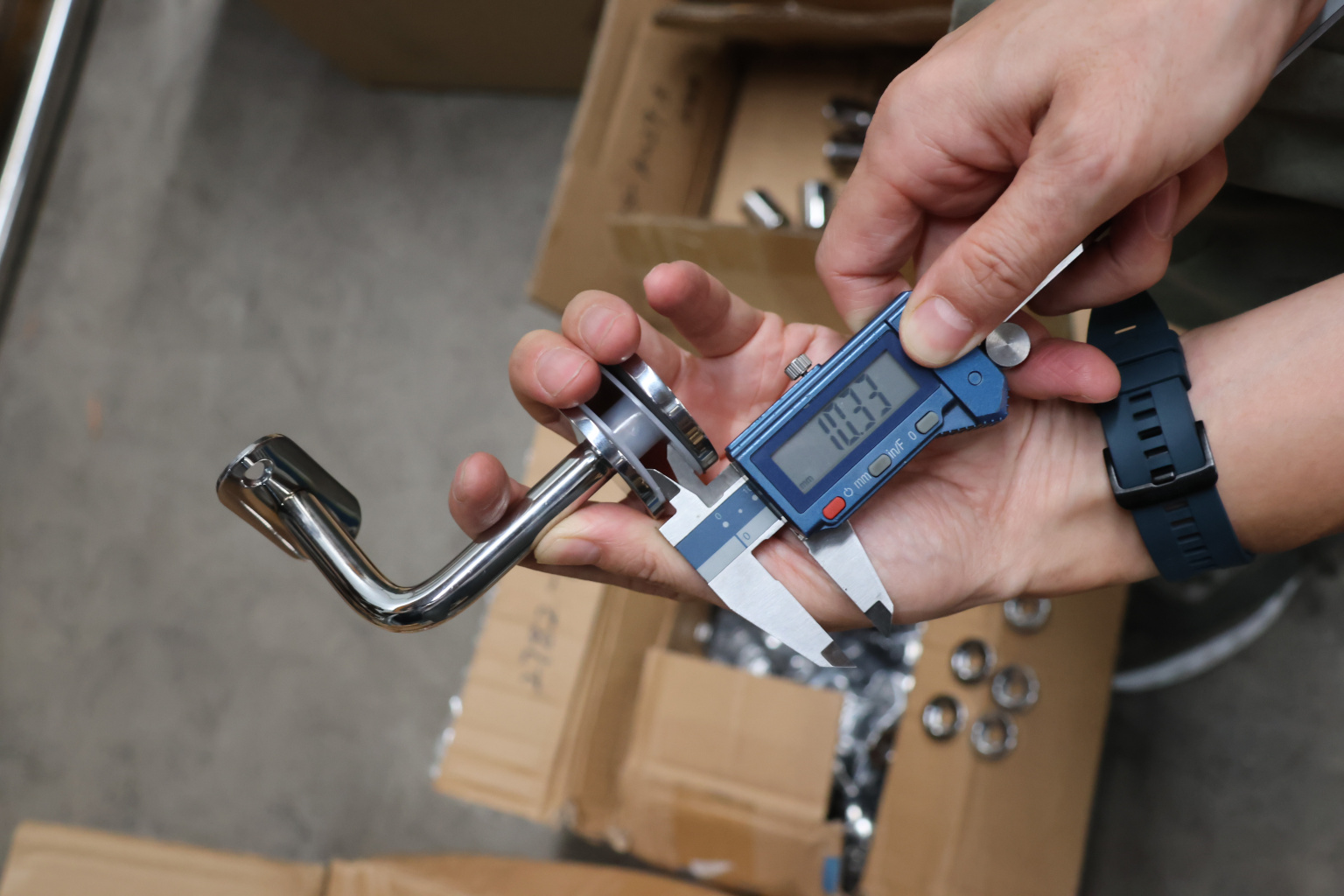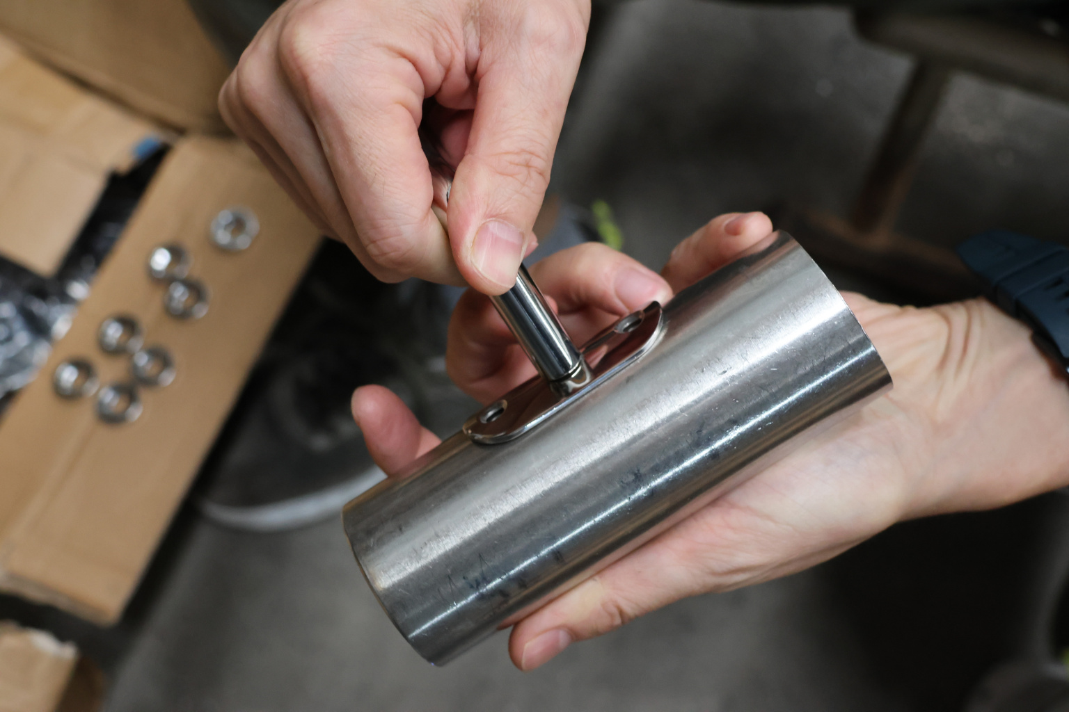 Для установки бокового держателя в стекле сверлится отверстие Ø17 мм, затем пристенок фиксируется затяжной гайкой в торце фланца. А сам поручень приваривается к загнутому наконечнику фитинга.