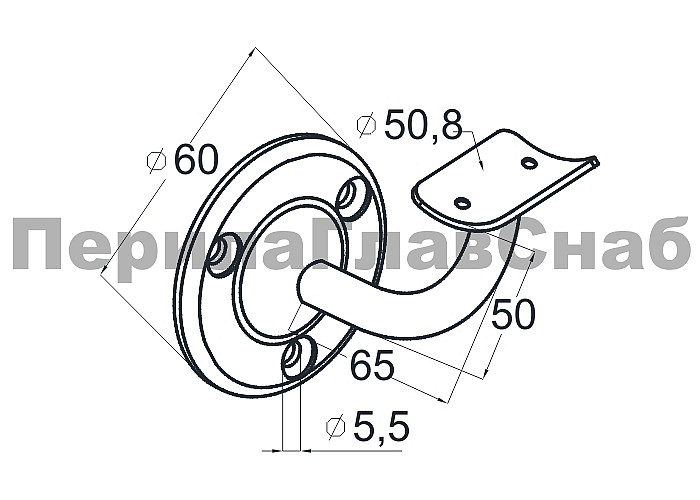 Пристенок с ложементом под Ø50.8 мм, вынос 70х45, Ø60х3 мм, литой, 25х45х2 мм, полированный, (AISI 316) k234-2