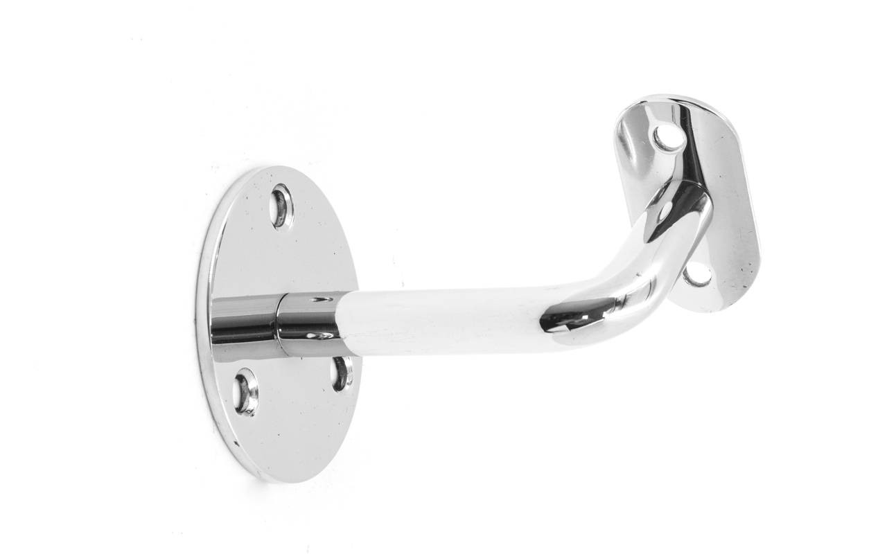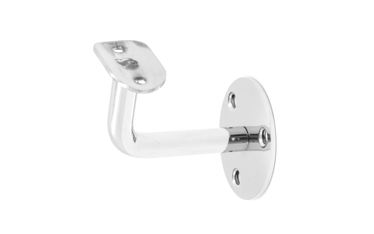 Благодаря оптимально подобранному выносу, пристенный поручень достаточно удален от поверхности стены, чтобы не задевать скользящей вдоль трубы поручня рукой идущего по лестнице человека. Но при этом поручень располагается близко к стене, дабы не сужать свободное пространство полезной ширины лестничного марша. Габариты: вынос 70х45 мм, Ø60х3мм, ложемент 25 х 45 х 2 мм