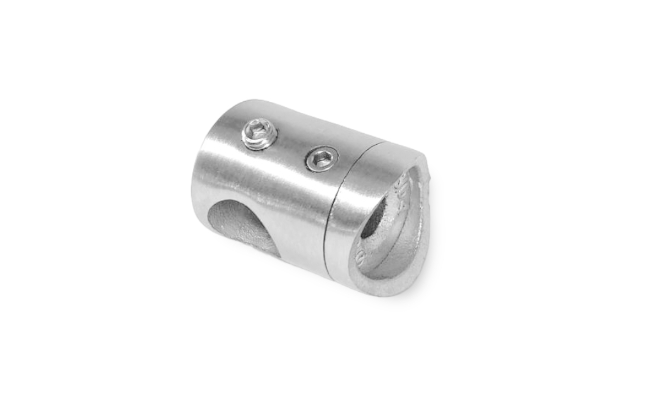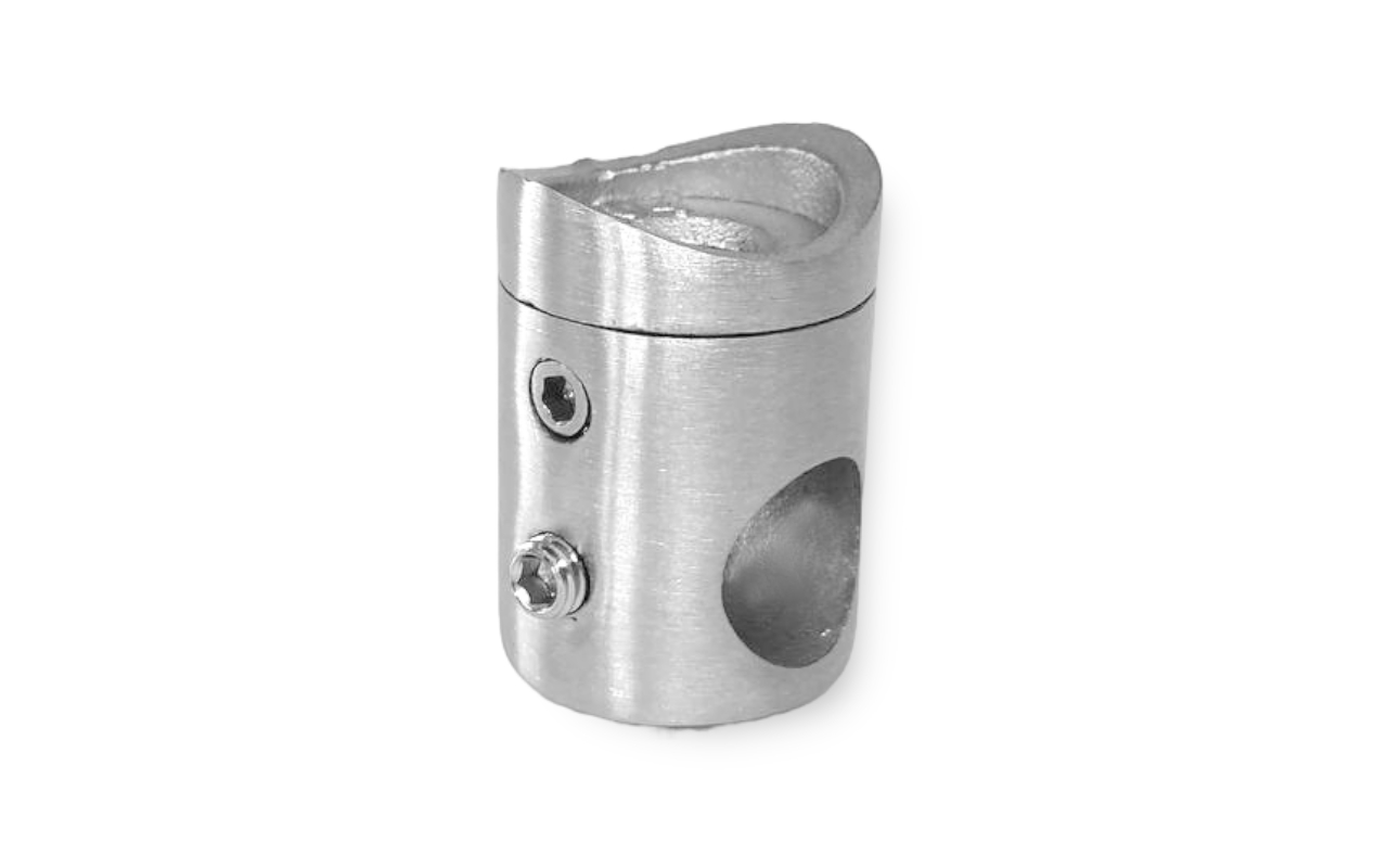 Предназначен для крепления нержавеющего ригеля Ø12.8 (тетивы, струны) к стойке диаметром 38.1 мм ограждения с ригелями.