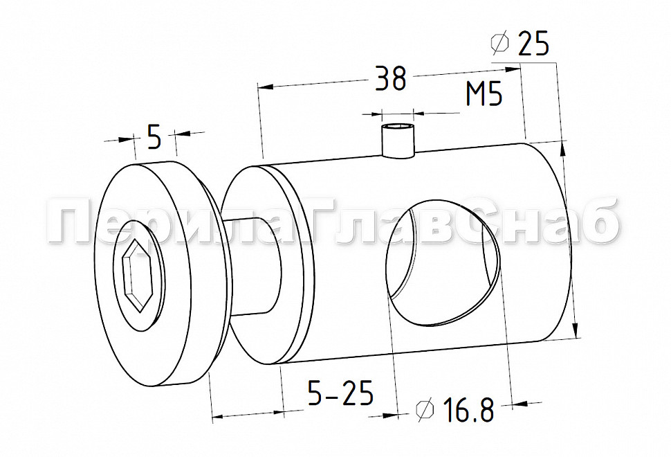внешний Ø25 мм, отверстие Ø16.8 мм, вынос 37 мм, k940-3.0 шестигранник ULTRA поштучно 3.0 мм